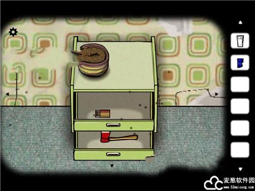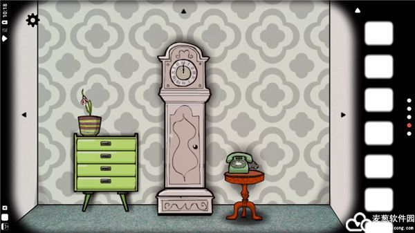 一进入游戏,你会首先发现,房间的墙纸已经破烂不堪,电线裸露且混乱,并且有许多奇怪的设备接入。首先映入眼帘的是大钟大厅。探索了一番后,你可以在柜子中找到火柴和斧头,但是似乎没有其他能使用的事物。
