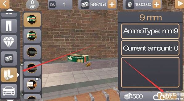 3、进入商城后可以看见已经内购的货币数量,选取自己喜欢的枪支,点击BUY进行购买