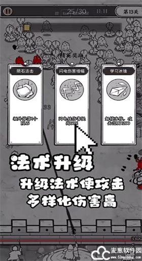 奥数飞弹作为主要输出位,其次为范围性群体伤害的技能例如滚木,前期最好奥数飞弹+-级火球术,能够解锁爆炸飞弹选项,这也是目前90%通关可能性的选择。
