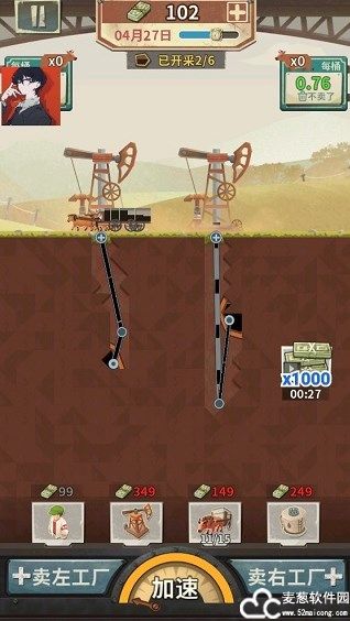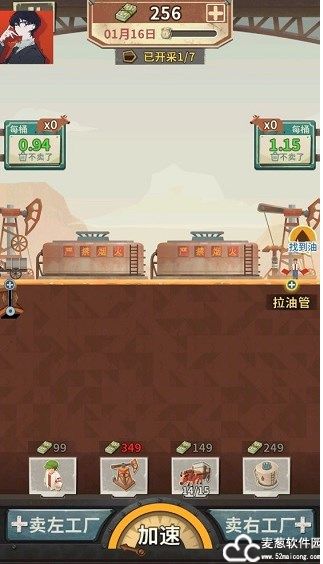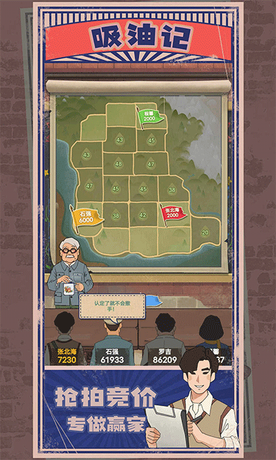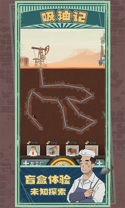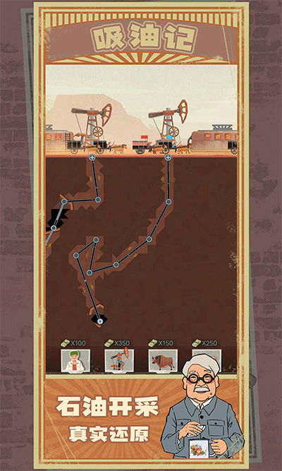 当找到油田后,我们就可以开始安装挖油机了,越往底下挖储油量肯定是越多的,不过50米以内的设备前期来说足够用了,毕竟我们还需要节省成本,不能一股脑的全部投入进去。卖油的时候也要留点心眼,不要急着出价,等买方先竞争一番再说,价高者得。吸油记正版手游是一款激发怀旧情怀的模拟经营游戏,精确地再现了上世纪70至80年代,中国东北大庆油田的繁忙开采场景。玩家将扮演油田开采团队的领头人,从勘探、提取石油到储存和销售,一步一步扩展收益。玩家需要利用智谋,降低成本,增加利润,通过不断升级设备和策略,让自己的石油帝国茁壮成长。游戏中,还可以选择不同地图挑战,丰富的玩法等待玩家探索。