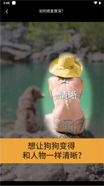 1、选择需要修复深景的图片,点击景深选项;