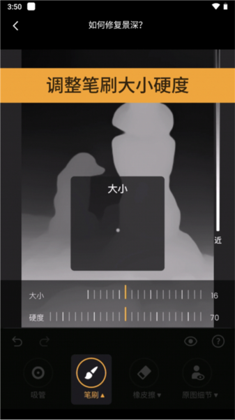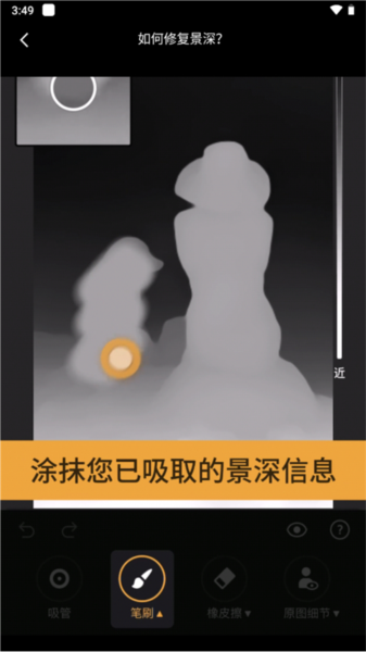 3、用笔刷工具,将选取的景深信息涂抹到需要修复的区域;