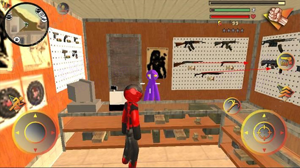 与不同的对手进行交锋,有时候会用上很多的重火力,你可以去军事基地搞辆坦克开开,虽然相较于轿车来说操作要相对负责,但是皮糙肉厚一般攻击根本伤不到分毫,火力又猛横冲直撞轻轻松松。火柴人绳索英雄无限钻石版展现了独特的火柴人角色扮演体验,所有角色均以火柴人形象出现。玩家化身为一名能够利用绳索在城市间自如跳跃的火柴人,游戏因其高度自由和多样化的武器及载具选择而被誉为手机版“GTA5”。与传统火柴人2D视角不同,采用第三人称3D视角,呈现更精致细腻的画面效果。游戏中新增的绳索系统允许玩家像蜘蛛侠一样在城市高楼间穿梭,结合武器使用,创造出多种极具观赏性的动作和逃脱场景。不设等级和经验概念,玩家完成任务后将获得金币和成就点。除了主线任务外,玩家的行动无任何限制,可尽情享受丰富的载具和武器带来的激情战斗。