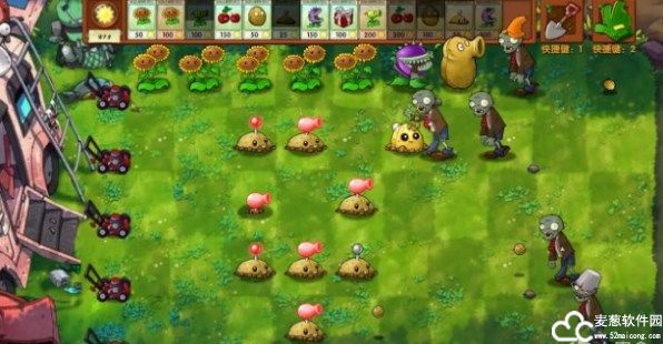 2、使用高于向日葵高度的坚果保护一路,其他路可以都种上“豌豆土豆雷”和“豌豆坚果墙”。