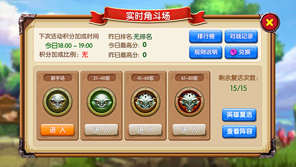 4、在角斗场中,要先安排出战阵容,决定英雄的上场顺序。