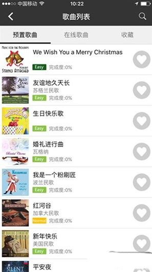 2、点击学习模式后,会有预置歌曲,在线歌曲,收藏,还可以在线搜曲,点击想学习的钢琴曲。