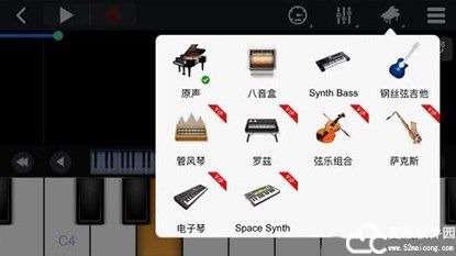 5、在右上角的选择中可以把声音变换成其他乐器。