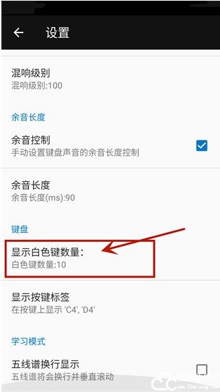 3、点击“显示白色键数量”