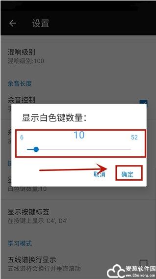 4、左右拖动滑块可更改白色键数量,按键越少则琴键越大