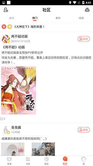 4、漫画家V社区,近距离互动,一键关注,实时获取最新动态