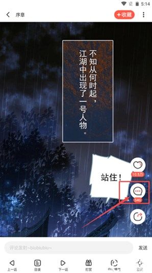 3、点击页面中间,会跳出菜单栏,点击右下角箭头所指评论图标;