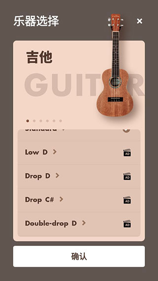 4、丰富的调弦选项:吉他可选调弦如Low D、Drop D、Drop C#等,尤克里里有Baritone、Low G,小提琴有Carnatic、5-string violin等多种特殊调弦。