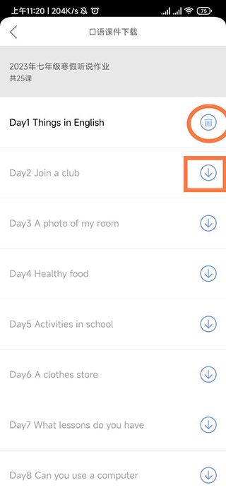 进入资料库后,可以删除已下载的资源或下载新资料,更换课件只需点击想要的课件。