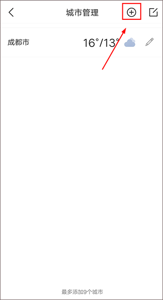 1、短期旅游或出差时,打开app,点击界面上方的【+】按钮,选择您想要查询天气的城市。