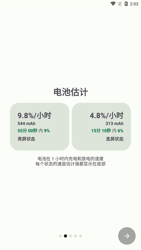 1、电池电量统计功能,展示充电和放电百分比以及预测充满或放空电量所需时间。