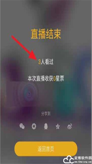 4、结束直播后,想看看自己今天的成绩怎样,后台会统计有多少人看过你的直播以及获得星票数。