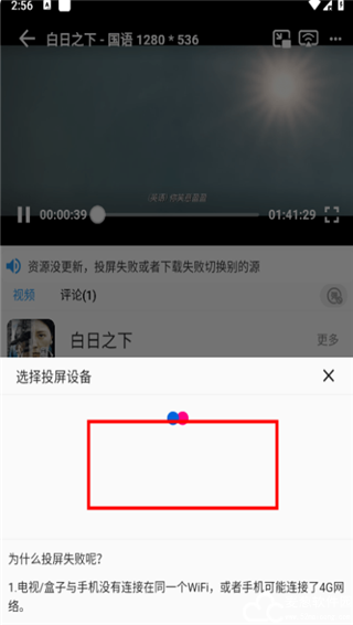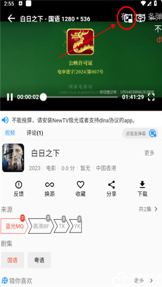 2、点击即可进入播放页,不过手机屏幕比较小,可以点击右上角的投屏图标。