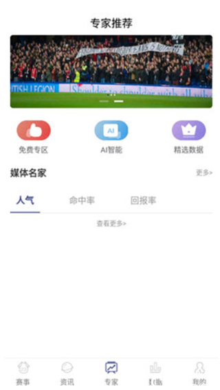 3、在专家推荐板块,会为你分析接下来即将要开打的比赛,AI智能预测,多样玩法等你来体验。
