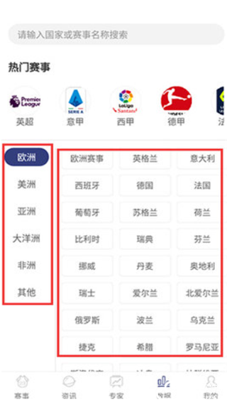 4、热门赛事覆盖世界各大洲赛事,欧洲、美洲、亚洲、大洋洲、非洲等一应俱全。