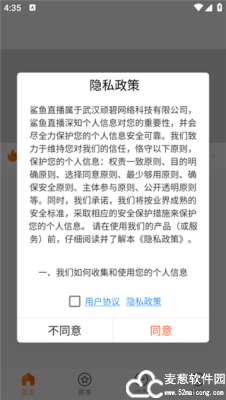 1、大家在麦葱站下载打开后,需要同意隐私政策后方可进入平台。