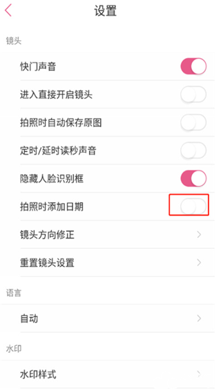 3、在【拍照时添加时期】这个功能打开后,即可显示时间和日期。