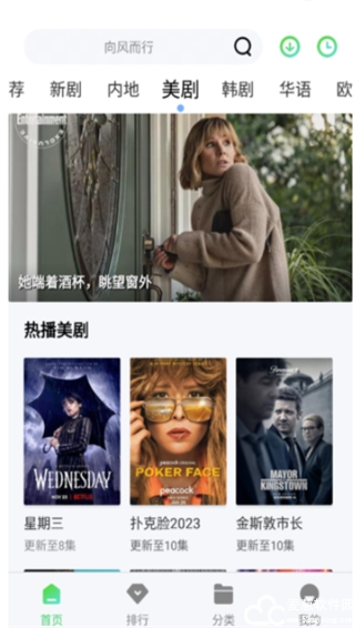 2、上方的是各大分类板块,包括新剧、内地、美剧等,根据各自喜好进入对应的栏目。