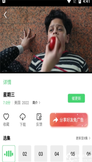 2、点击视频标题会进入影片主界面,会有演员阵容,剧情详解等,点击视频截图会就会开始边缓冲边播放视频了。