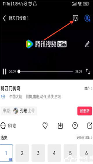 2、如果你有中意的电视剧,点击即可进入播放页面,然后点击右上方的【TV】