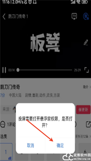 3、投屏需要打开悬浮窗权限,用户需要确定打开。