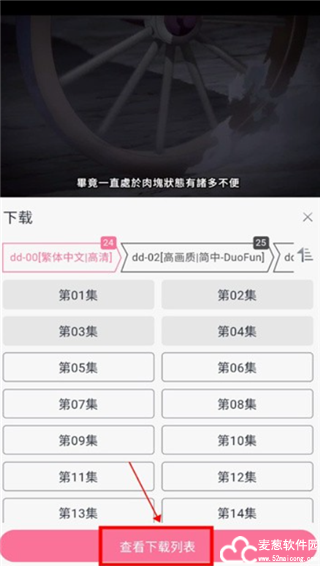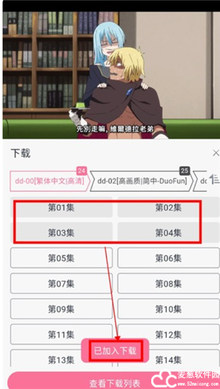3、选择需要下载的集数。