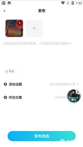 5、最后编辑你想要发的文案,说一些自己想要表达的内容,觉得不错的话就【发布动态】