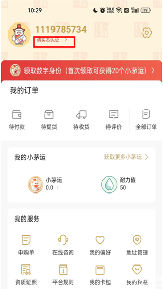 1、大家进入平台后,可以看到最新推出的新品茅台冰淇淋,想要尝尝的朋友可以点击购买,但是需要先认证信息,点击下方【我的】