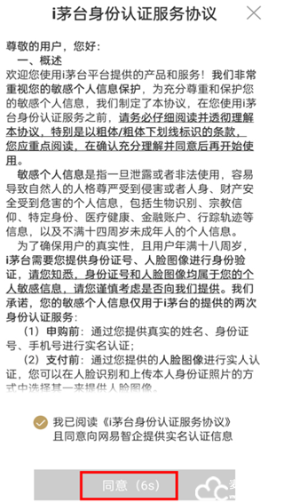 3、查看身份认证服务协议后,勾选【我已阅读并同意】