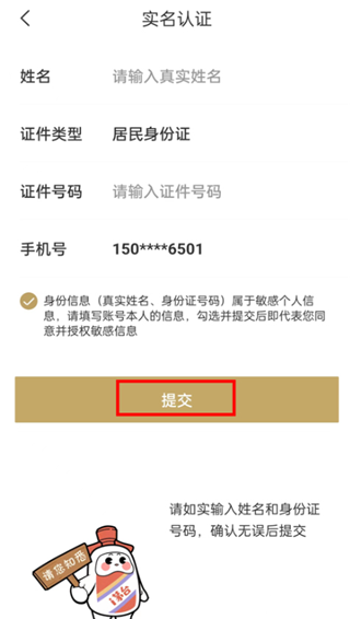 4、然后输入你的姓名、身份证以及手机号提交认证即可。