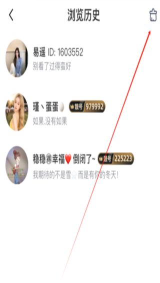 3、你所有观看过的主播都会显示在这里,点击右上角的清除。