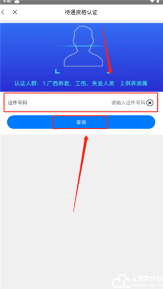 1、大家在麦葱软件站下载后,打开后首页会有很多相关社保服务,点击【待遇资格认证】