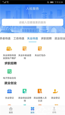 1、失业待遇:可以进行失业保险金、技能提升补贴、失业保险待遇等失业服务的办理和查询。