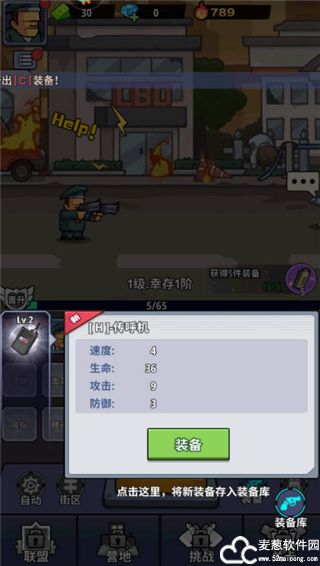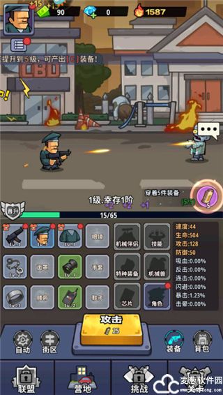 1、游戏的核心玩法是通过击败僵尸大军获得装备。每一波僵尸都将是你获得新武器和道具的机会。击败僵尸后,记得及时拾取战利品,通过这些装备强化角色的战斗力。你需要不断提升自己的实力,才能面对越来越强的敌人。