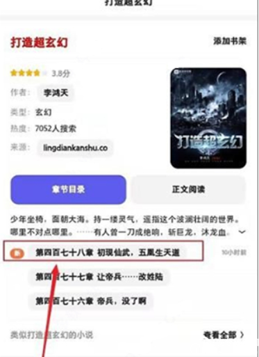 2、找到这部【打造超玄幻】后,小说界面有作者名,内容简介一集章节目录等。