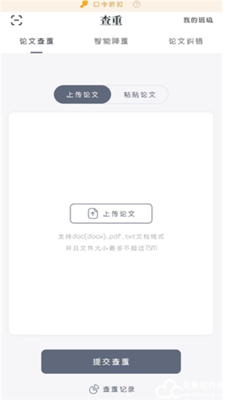 3、在首页查重板块,有三项功能,论文查重、智能降重以及论文纠错,大家可以直接上传论文查看情况。