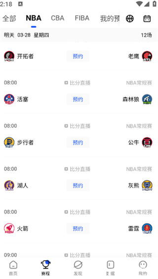 1、进入软件后,点击下方的【数据】,就可以看到NBA、CBA联赛的赛季排行,包括球队榜、球员榜等以及转会信息。
