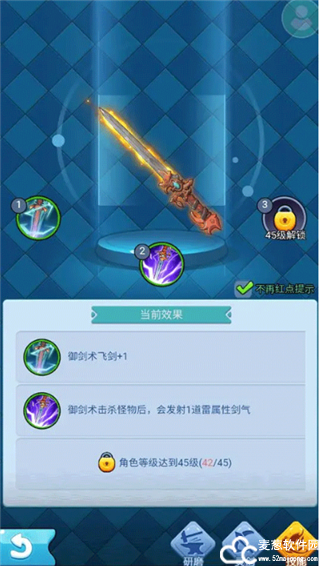 灵剑影响普攻成长,不同的灵剑会带来不同的技能与效果(通过活动获得)。