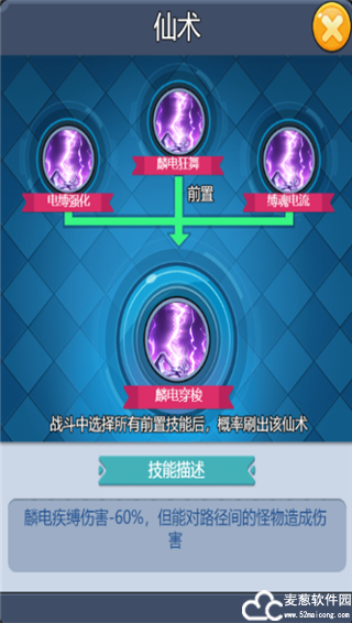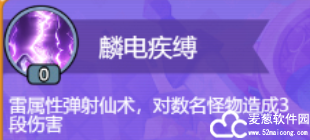 麟电疾缚:雷属性弹射仙术,对书名怪物造成3段伤害。