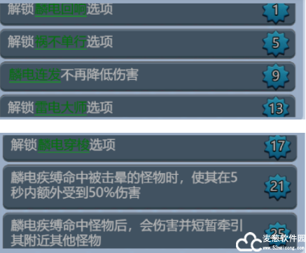 25级:麟电疾缚命中怪物后,会伤害并短暂牵引其附近其他怪物。