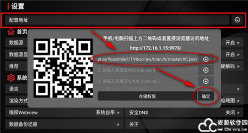 2、点击【配置地址】,将上方的链接输入进去,点击【确定】