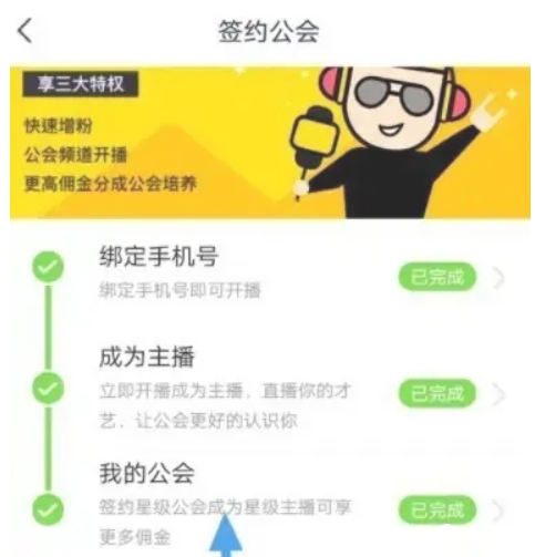 4、点击后进入【签约公会】,点击下方的【我的公会】
