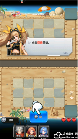 2、战斗初期场上英雄少,优先召唤更多的英雄让战况更稳定。场上攻击英雄较少或者想将战力进一步提升,可以进行合成操作。