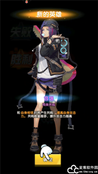 5、恭喜大家获得新英雄,音爆,这是一个十分炫酷的女性角色。