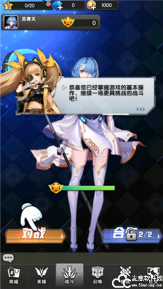 2、开始后会有一个新手教程告诉大家如何操作,首先点击召唤英雄。