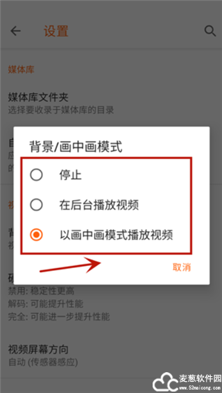 2、在这里我们可以看到视频选项里,有一个【背景/画中画模式】